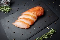 Нежная и сочная текстура, потрясающе красивый срез и насыщенный мясной вкус с нотками дымка – вот как вкратце можно описать нашу фирменную грудинку. Из пряностей в составе только соль, чеснок и ароматный чёрный перец.