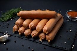 Это продукт, отличающийся нежной консистенцией и классическим вкусом. Приготовленные из говядины и свинины собственного производства сосиски имеют в составе молоко и натуральные специи – черный перец, кориандр, чеснок и имбирь.